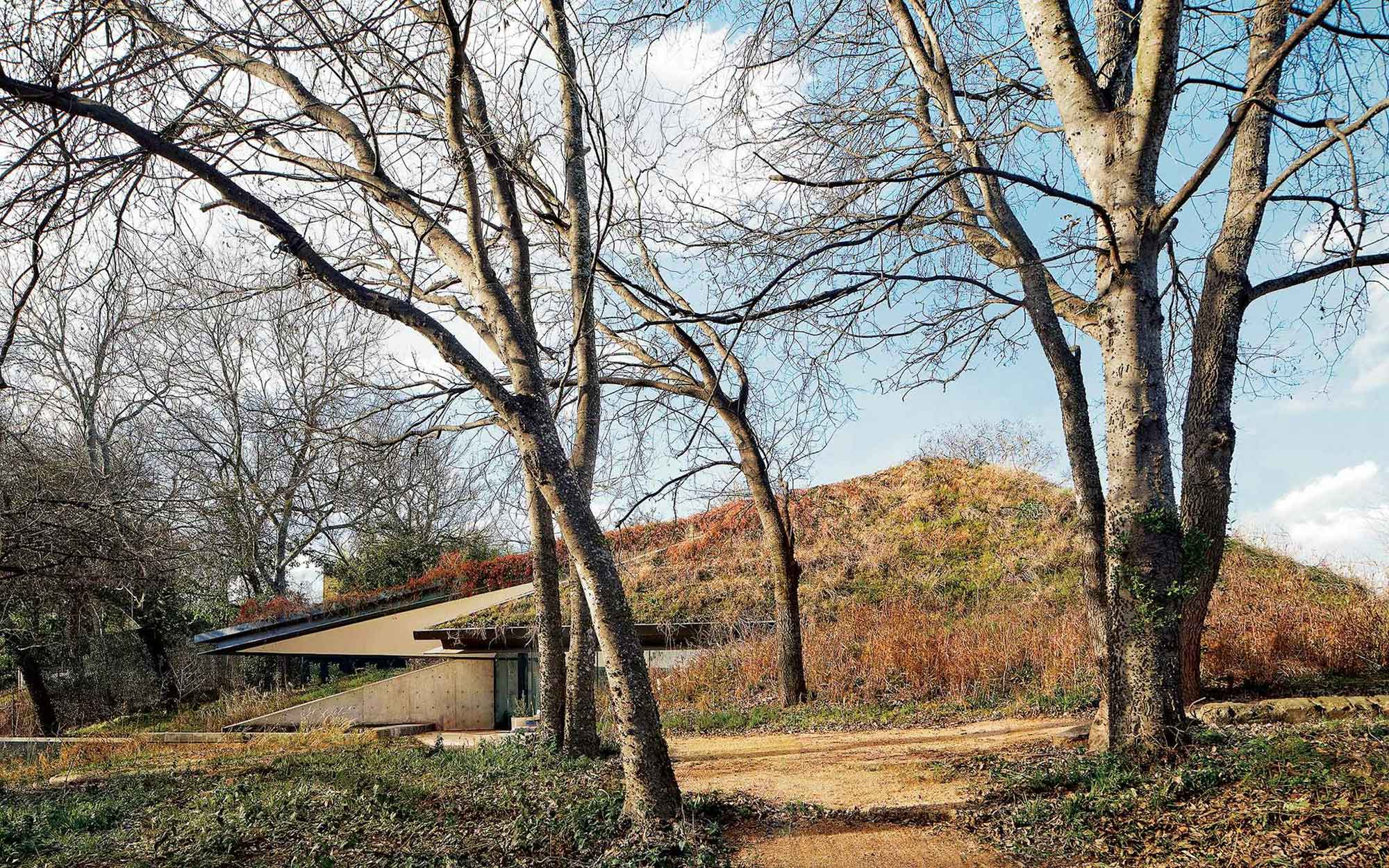 Edgeland House reimagines one of North America’s oldest housing typologies, the Native American pit house, through a contemporary lens of environmental restoration and design innovation. Built on a rehabilitated brownfield site along the Colorado River, the home is partially sunken into the earth to draw on the ground’s natural thermal stability. Its green roof and hydronic heating system work in tandem to regulate temperature year-round, creating a highly efficient and resilient envelope.