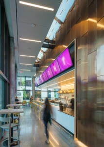 Inside, the material palette continues the interplay of refinement and durability. Polished concrete, warm metal finishes, and carefully detailed millwork create an environment that feels both cinematic and tactile. Through its attention to craft and atmosphere, Skylight Cinema extends the experience of film beyond the screen, turning a night at the movies into an encounter with space, light, and community.